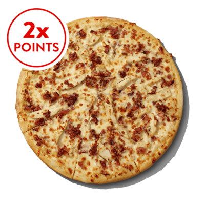 Our Chicken, Bacon & Ranch Pizza starts with ranch dressing and is topped with grilled chicken, smoked bacon crumbles, and mozzarella cheese. Order pizza for delivery or pickup!