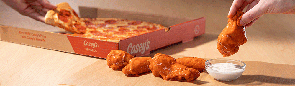 Casey’s crispy bone-in and boneless wings are made-to-order, seasoned with a blend of spices, and tossed in one of our five flavorful sauces. Experience the ultimate crispy crunch with our perfectly fried wings, delivering unbeatable flavor in every bite. Enjoy with your choice of Casey’s House-Made Ranch or Signature Bleu Cheese for dipping. Order ahead in the Casey’s app. Available to order in counts of 10, 15, and 20 pieces.